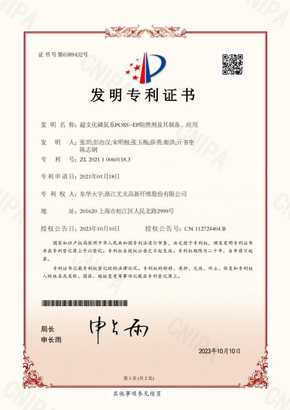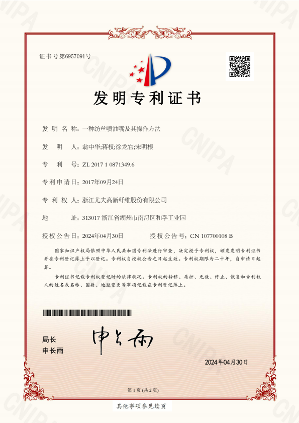 發明專利證書一種紡絲噴油嘴及其操作方法